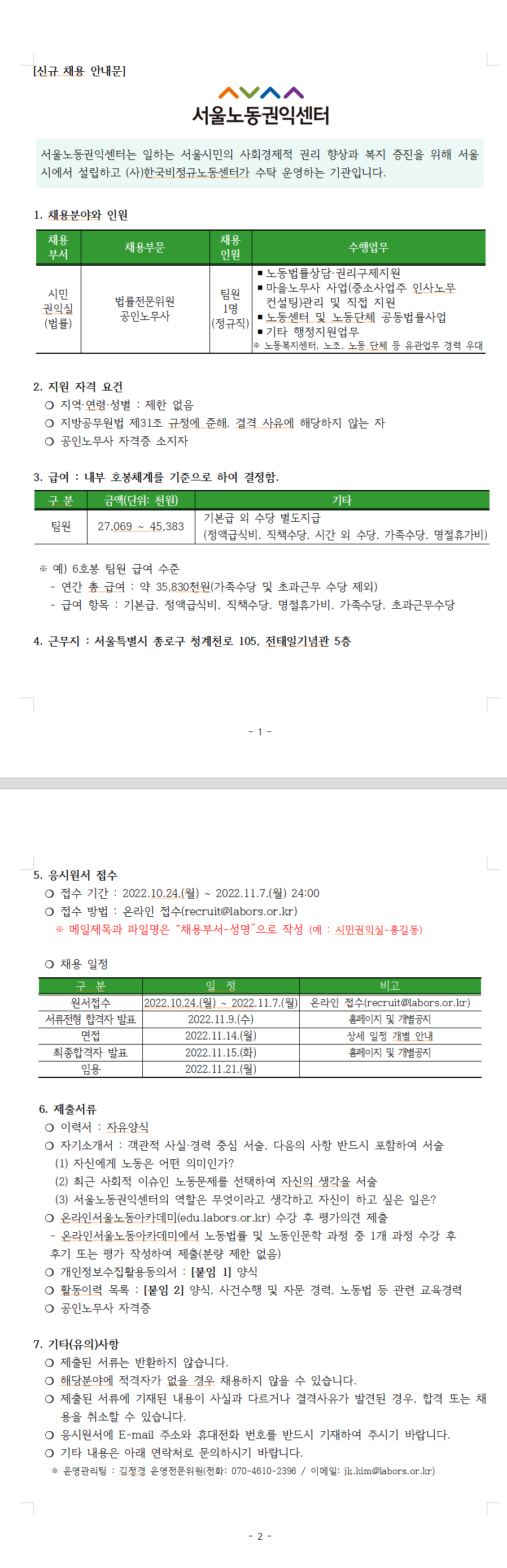 서울노동권익센터에서 알려드립니다.