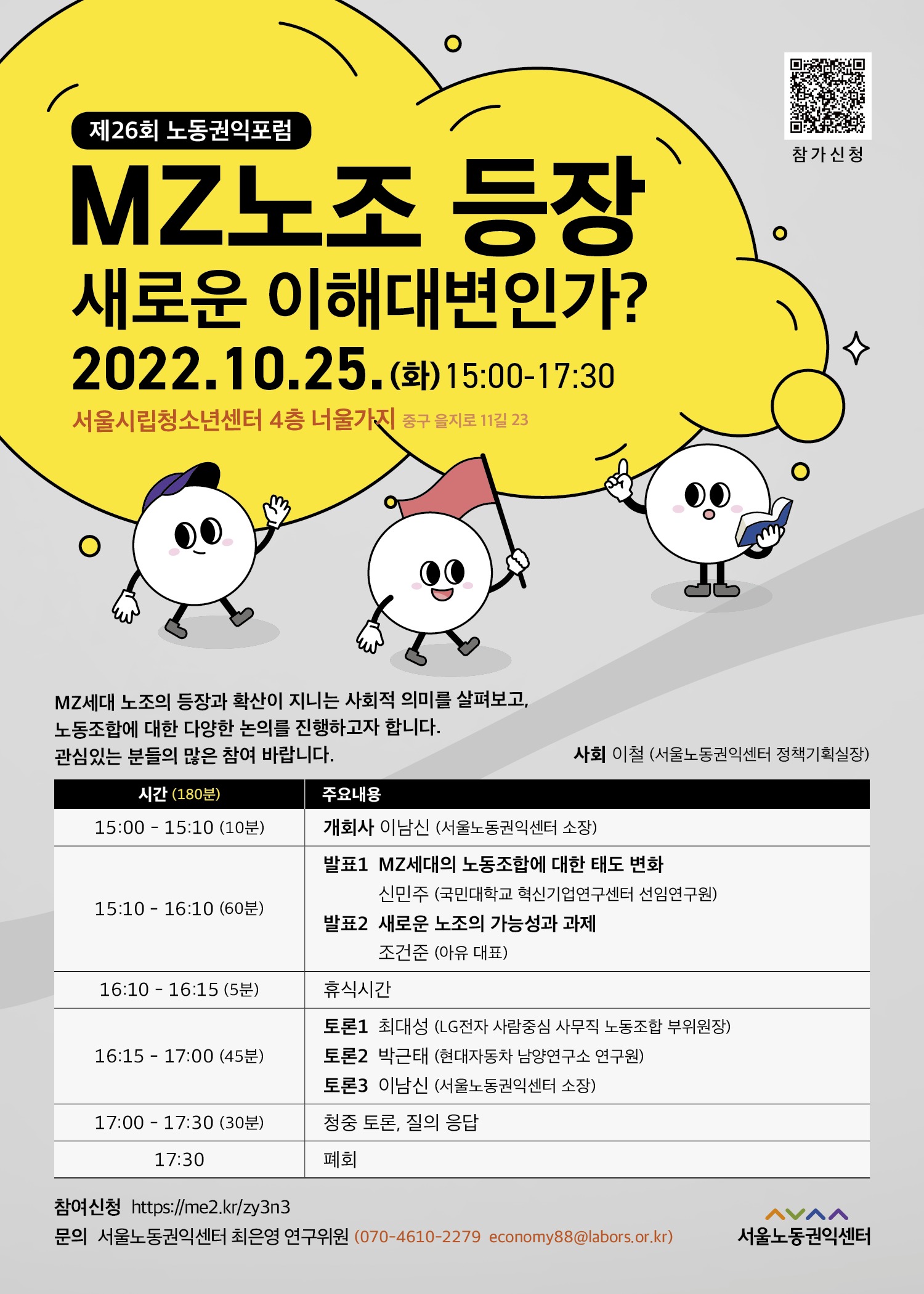 | 행사 2022-10-11 제26회 노동권익포럼(2022-3) MZ노조 등장 새로운 이해대변인가? |