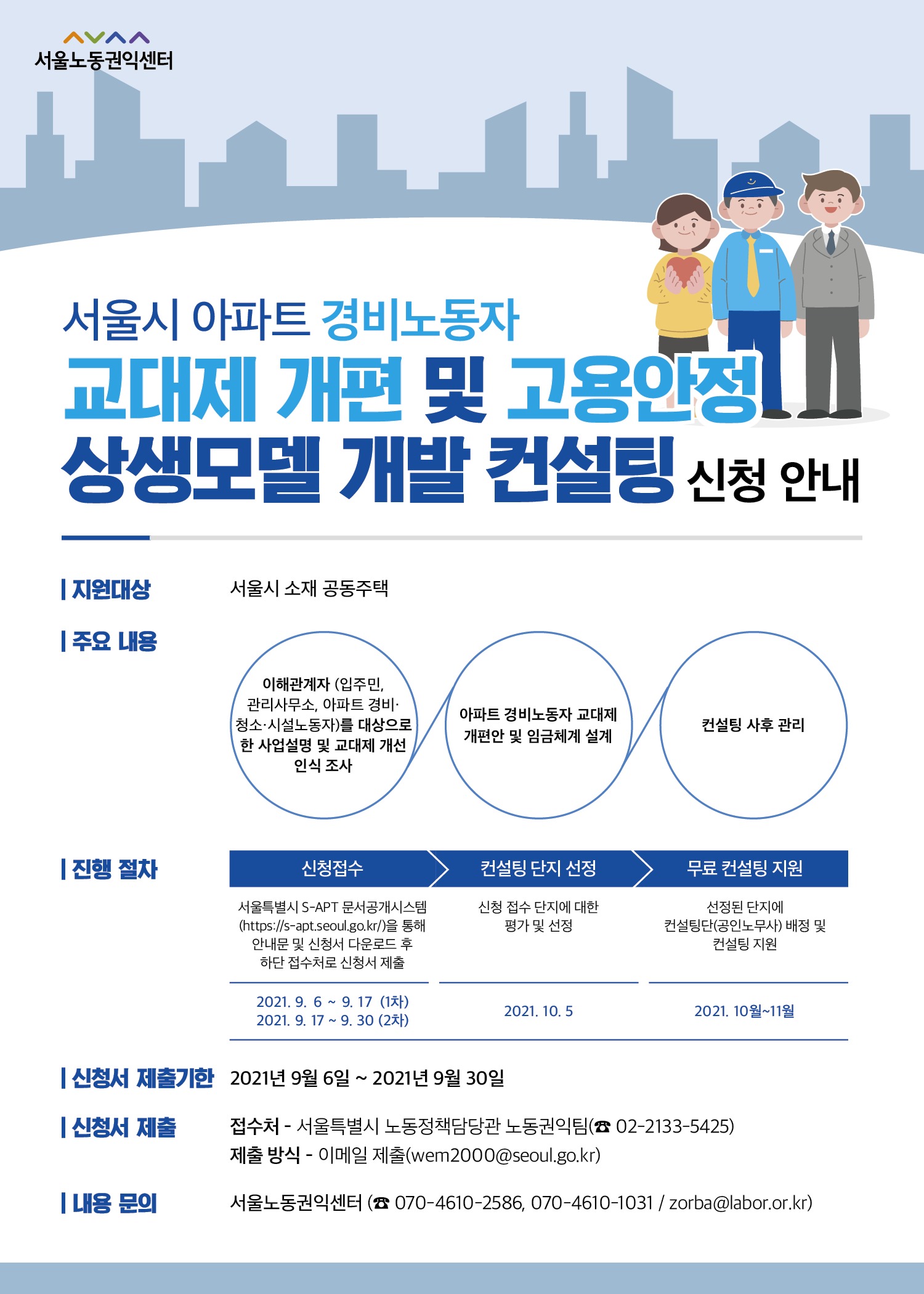 서울시 아파트 경비노동자 교대제 개편 및 고용안정 상생모델 개발 컨설팅 신청 안내