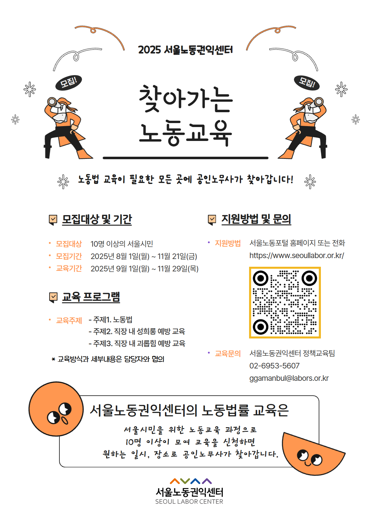 공지 노동법률 교육 <찾아가는 노동교육> 하반기 신청 접수 안내 (2025.8.1.~11.21.) |