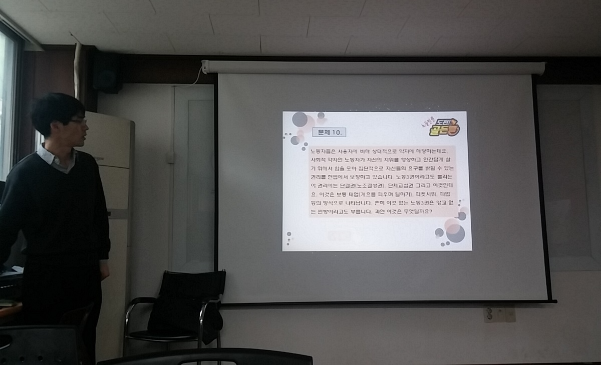 노동인권교육은 강의하는 사람, 강의를 듣는 사람, 강의공간등에 따라서 교육은 아주 다양하게 진행되겠지만,