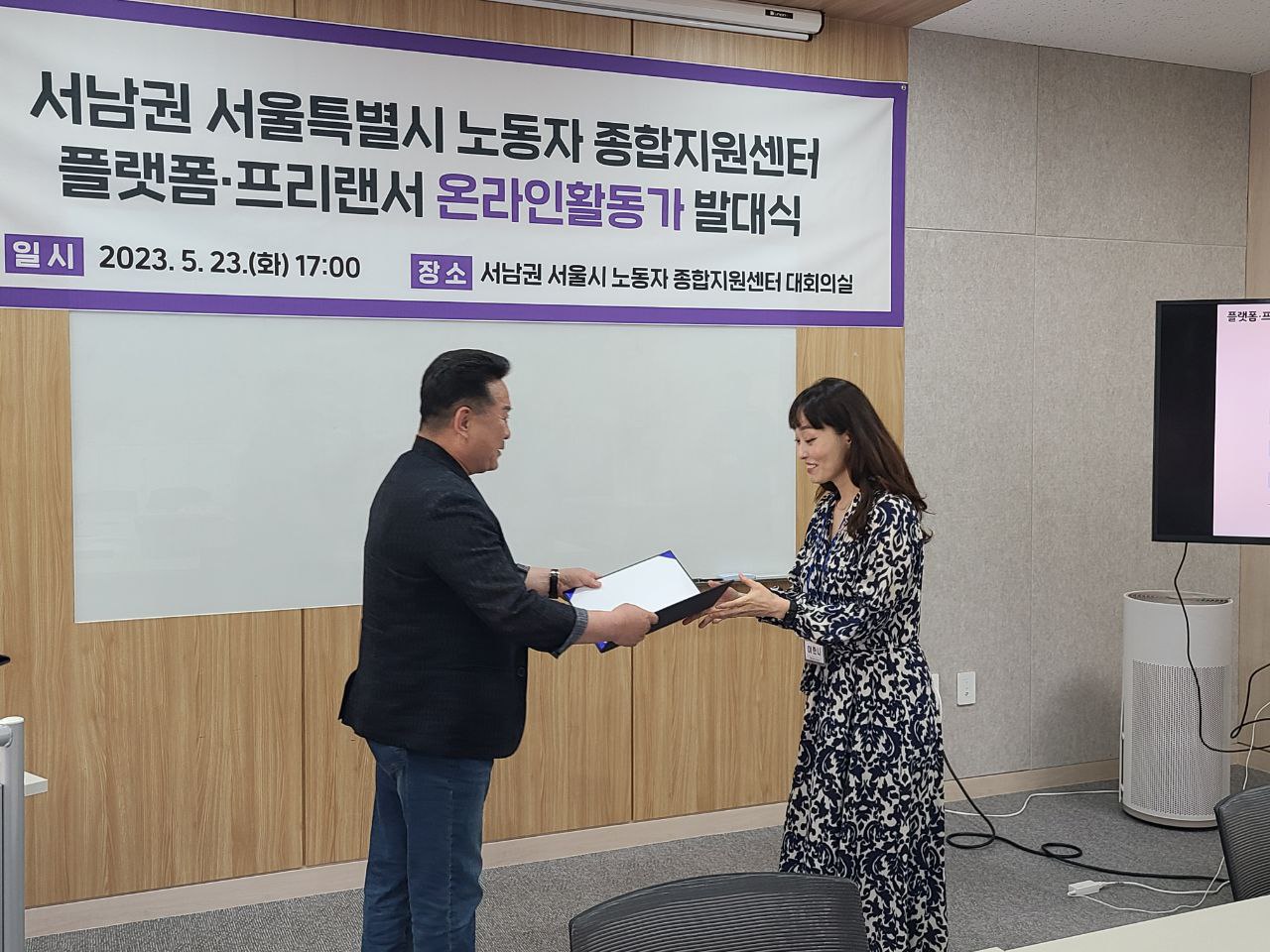 서남권 서울시 노동자 종합지원센터(센터장 임승운)는 2023년 플랫폼·프리랜서 노동자 온라인활동가 3기 발대식을 개최하였습니다. 올해 공모를 통해 최종 선정된 온라인활동가 3기는 총 7명으로 블로그, 인스타그램, 페이스북, 유튜브 등 개인 SNS나 카페, 밴드 등 온라인 커뮤니티 등에서 활발히 온라인 홍보 활동을 펼칠 예정입니다.