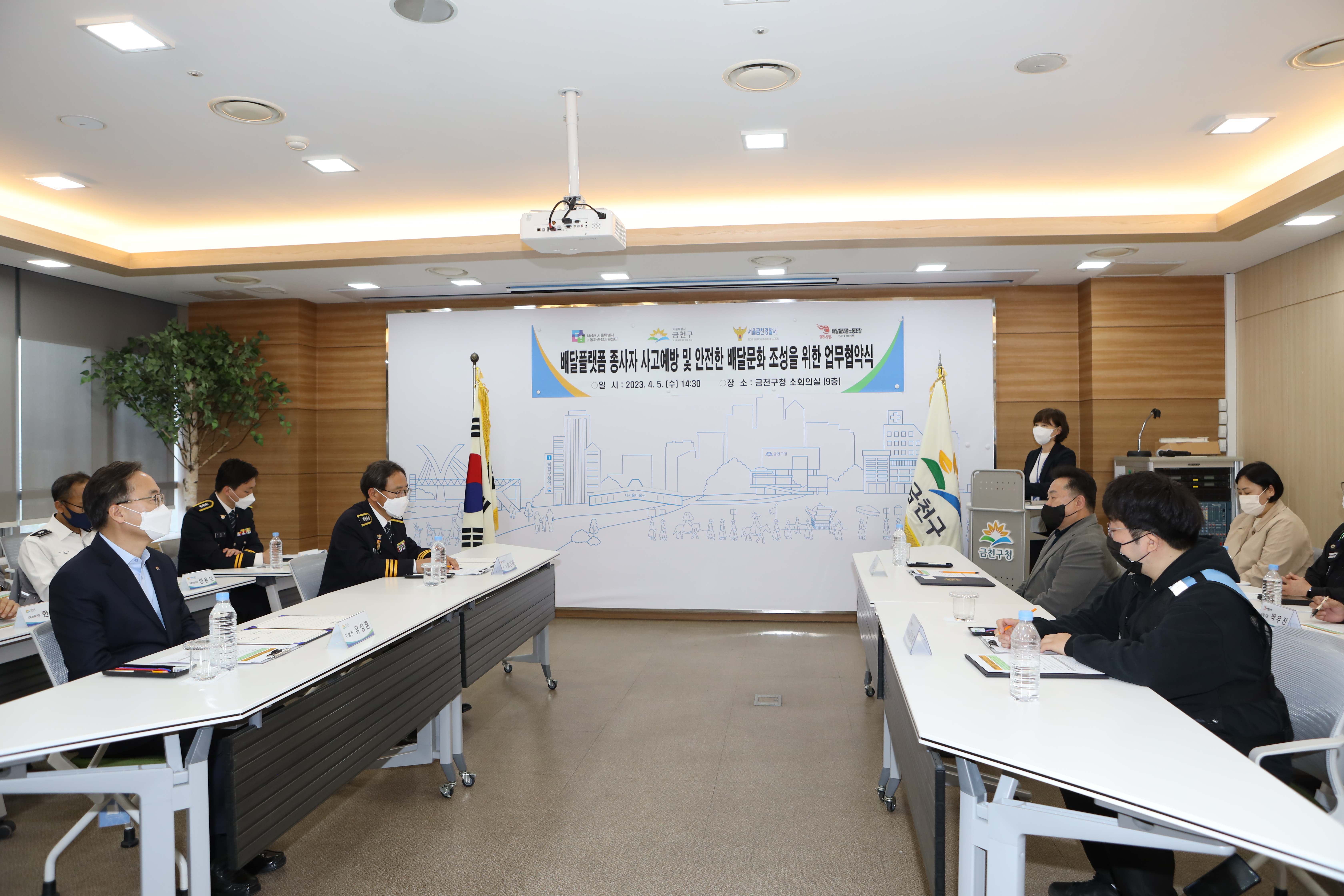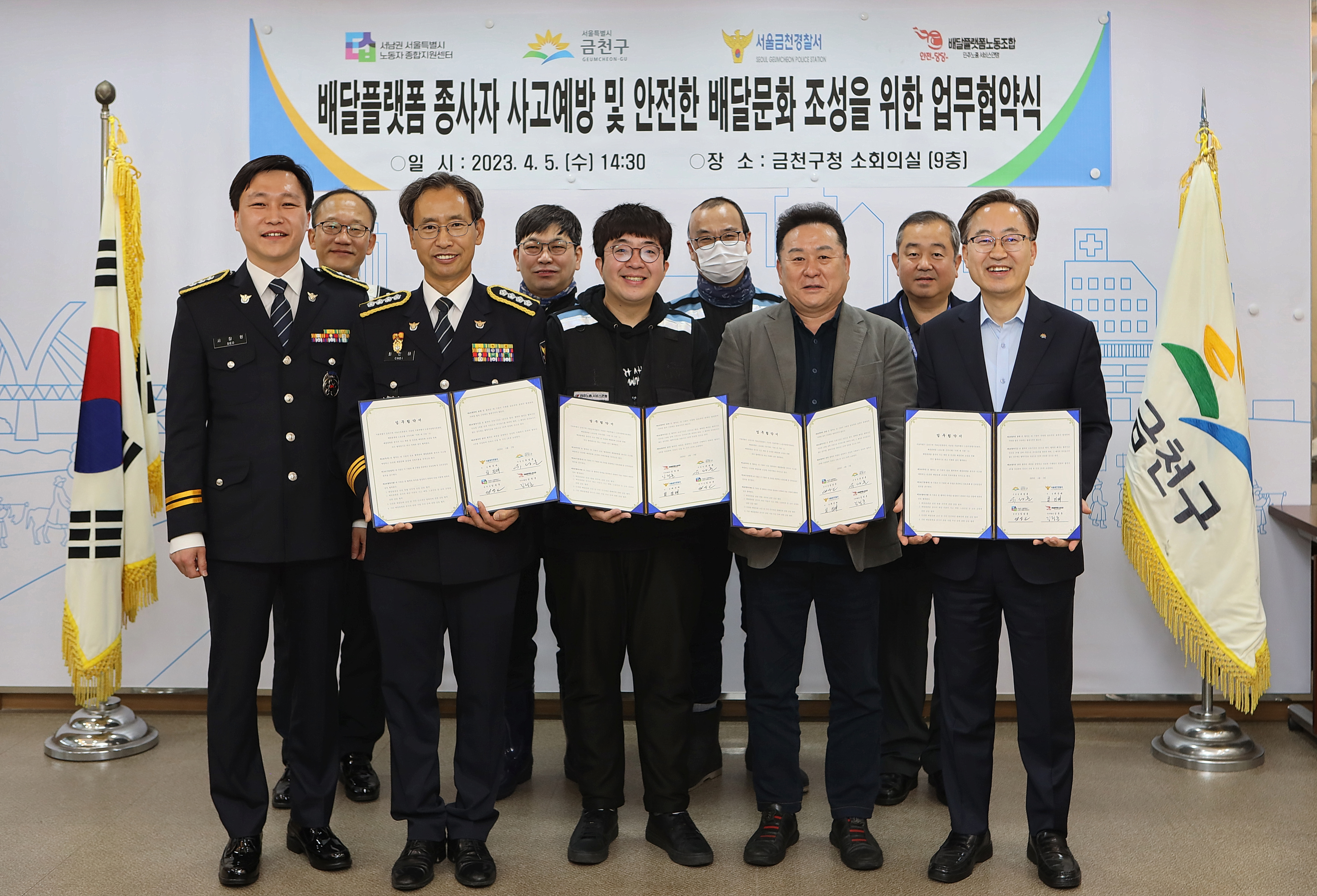 안전한 배달문화 조성을 위한 업무협약 체결(금천구, 금천경찰서, 배달플랫폼노동조합 서부지회) |