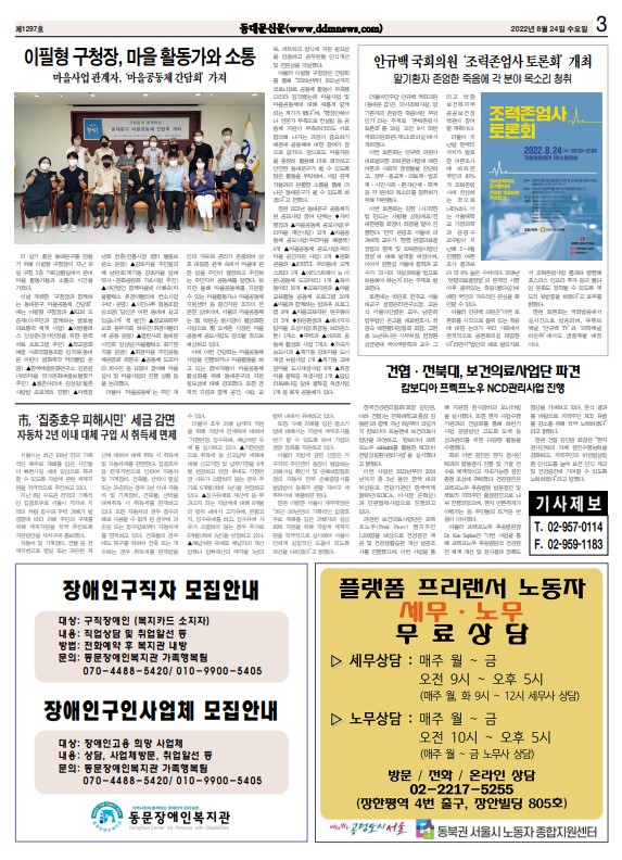 동대문신문 광고(2022년 8월 3일 / 8월 24일)