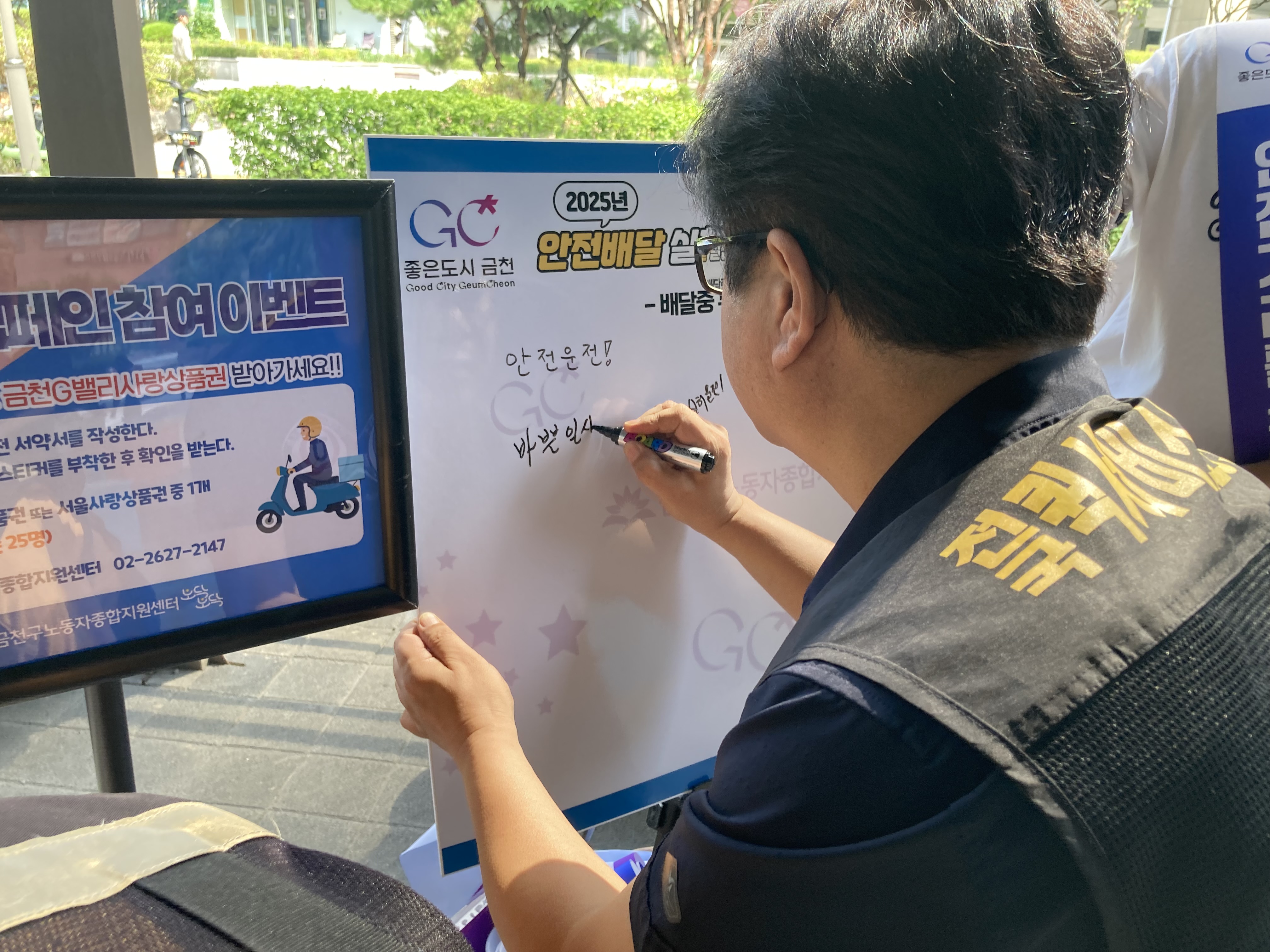 안전용품 증정 : 손목보호대, 헬멧이나 목에 걸 수 있는 선풍기 등