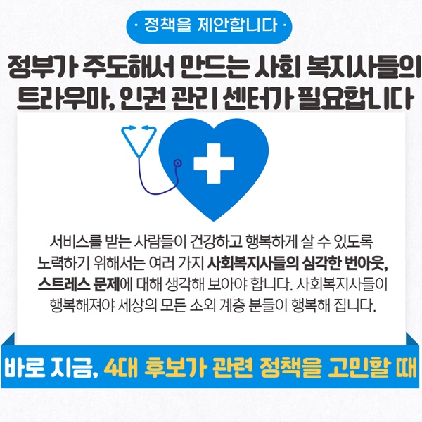 업무별로 강도가 다르지만 사회복지사들은 평균적으로 수십 명을 담당해야 한다. 이들은 돌봄과 상담, 생활을 지원하며 아이들과 노인분들을 돌본다. 특히 코로나19로 인해 담당해야 하는 사람과 업무가 늘어나면서 감정 소모도 늘어나고 있다.