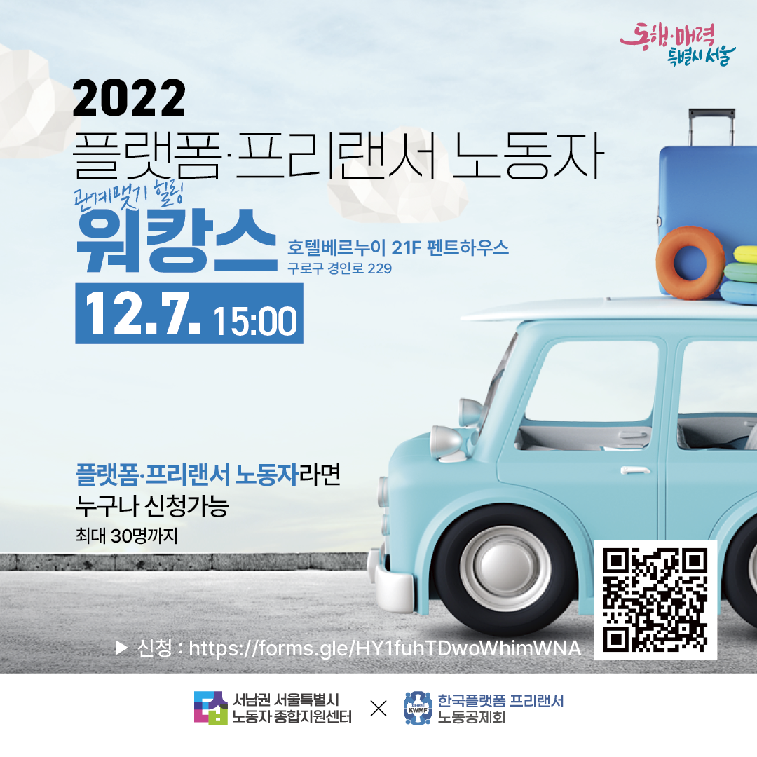| 공지 서남권 [신청마감] 플랫폼·프리랜서 노동자를 위한 워캉스 (12.7~8) |