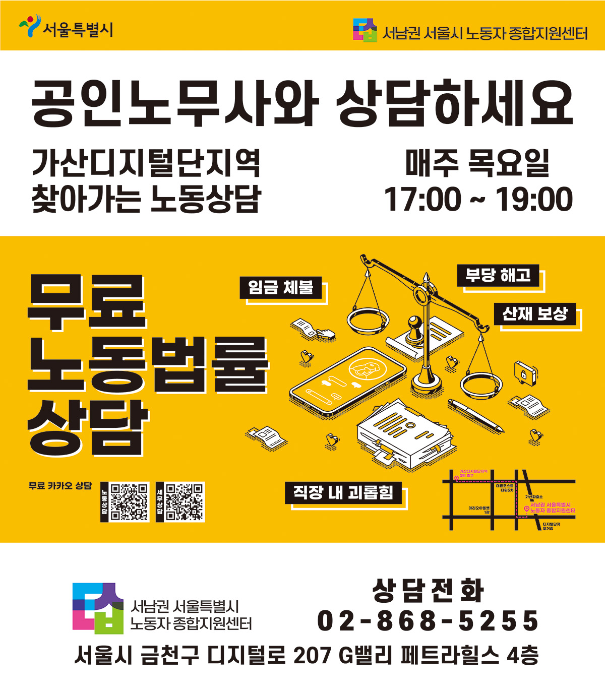 | 알림 서남권 가산디지털단지역 퇴근길 찾아가는 노동상담 안내 |