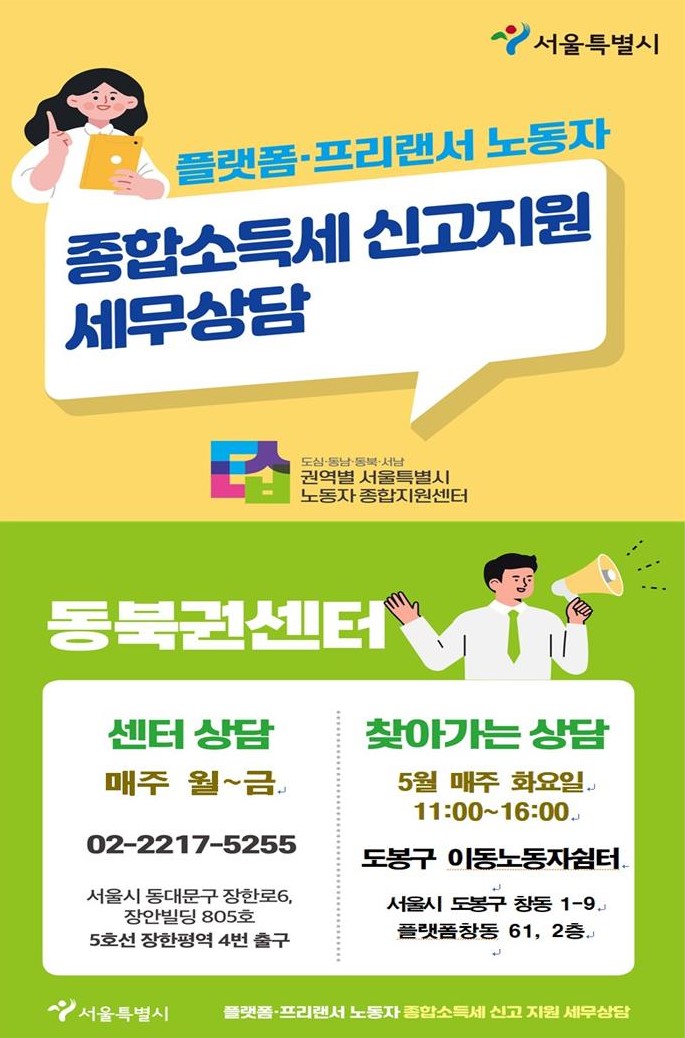 공지 동북권 2022년 종합소득세 신고 지원을 위한 찾아가는 세무상담(도봉구 이동노동자쉼터)