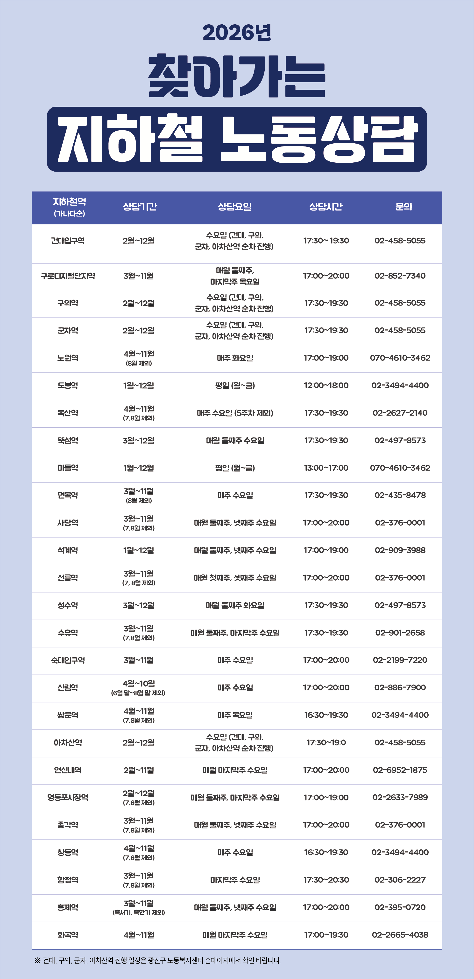 | 알림 2026년 지하철역으로 찾아가는 노동상담 안내 |