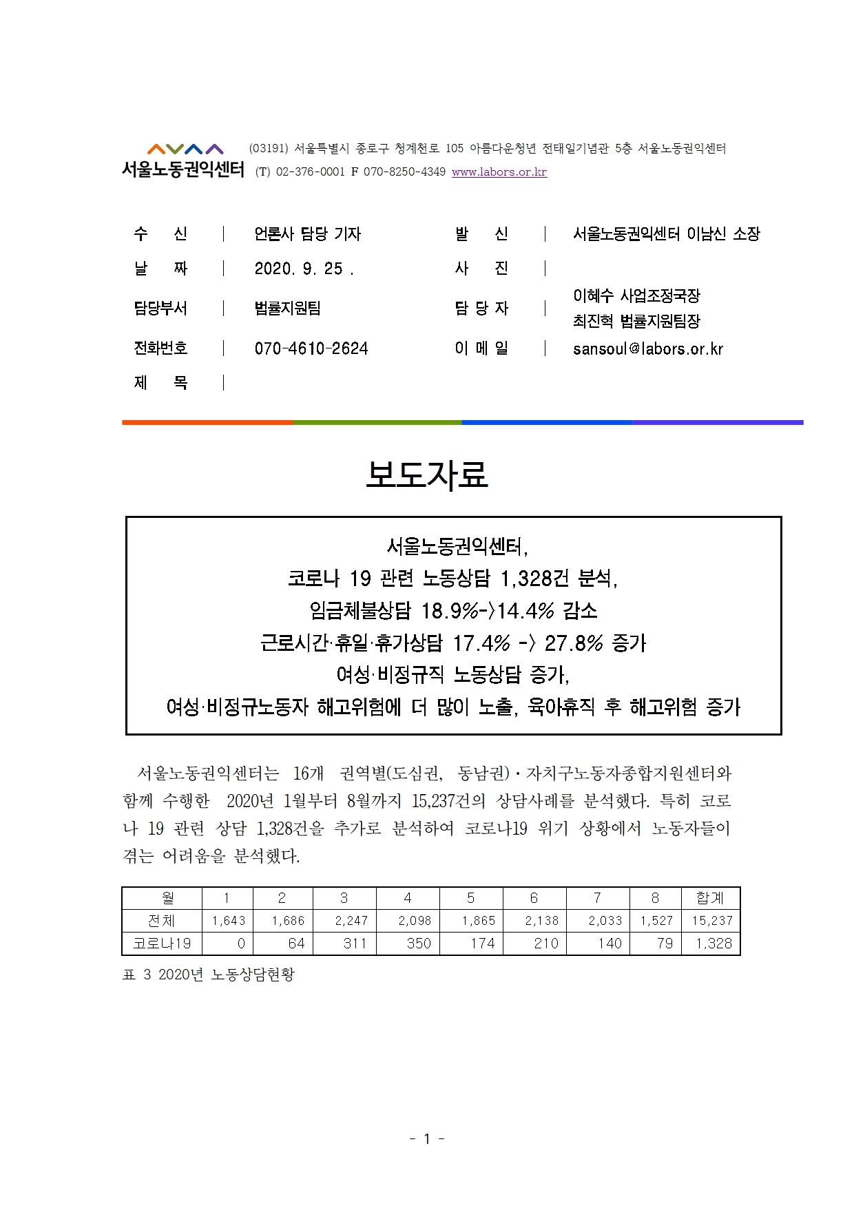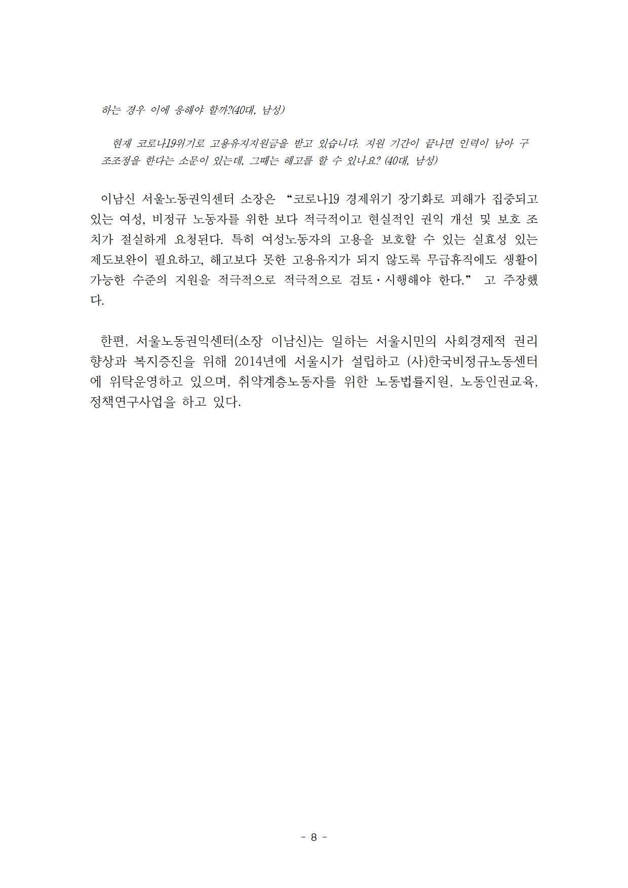 코로나19와 함께 증가한 해고·실업 상담…“여성·비정규직에 집중”_2020-09-25