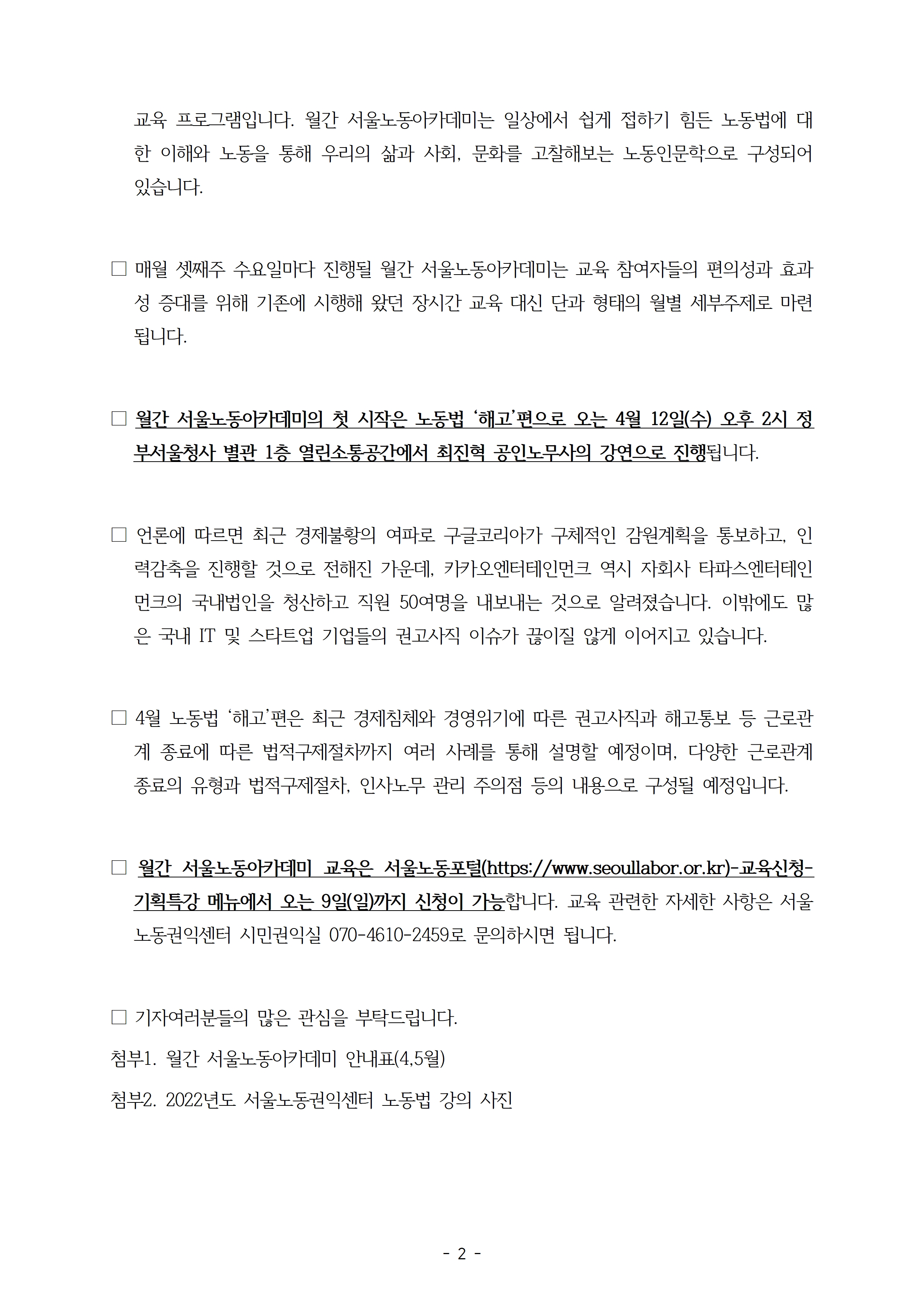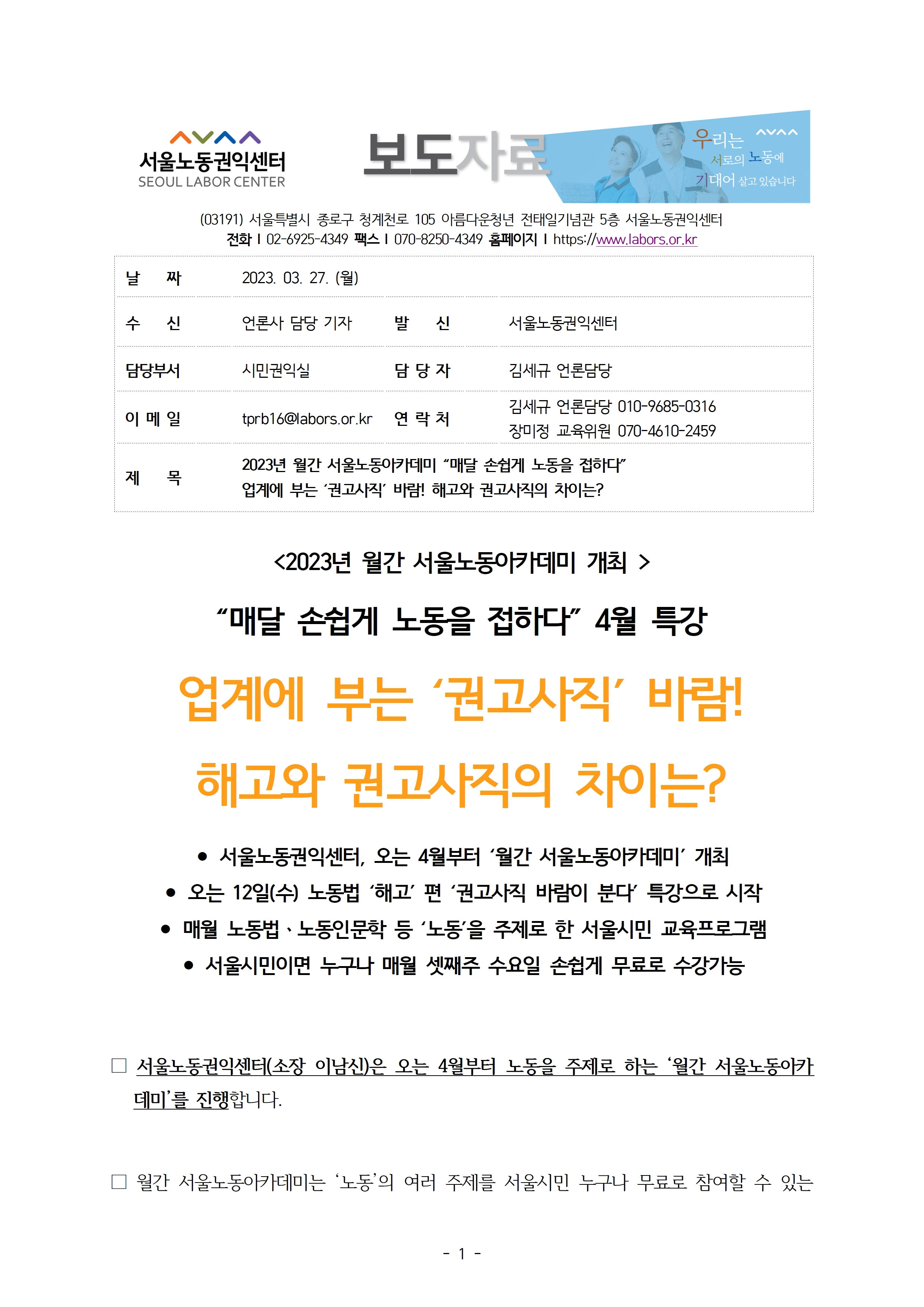 월간서울노동아카데미-매달 손쉽게 노동을 접하다