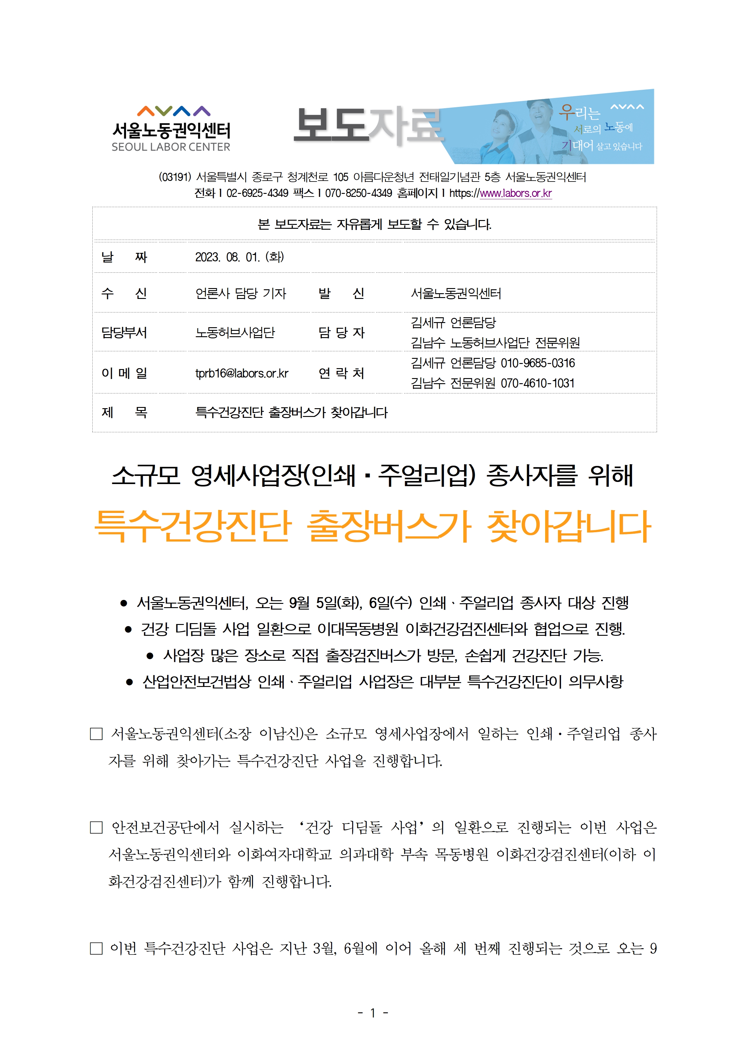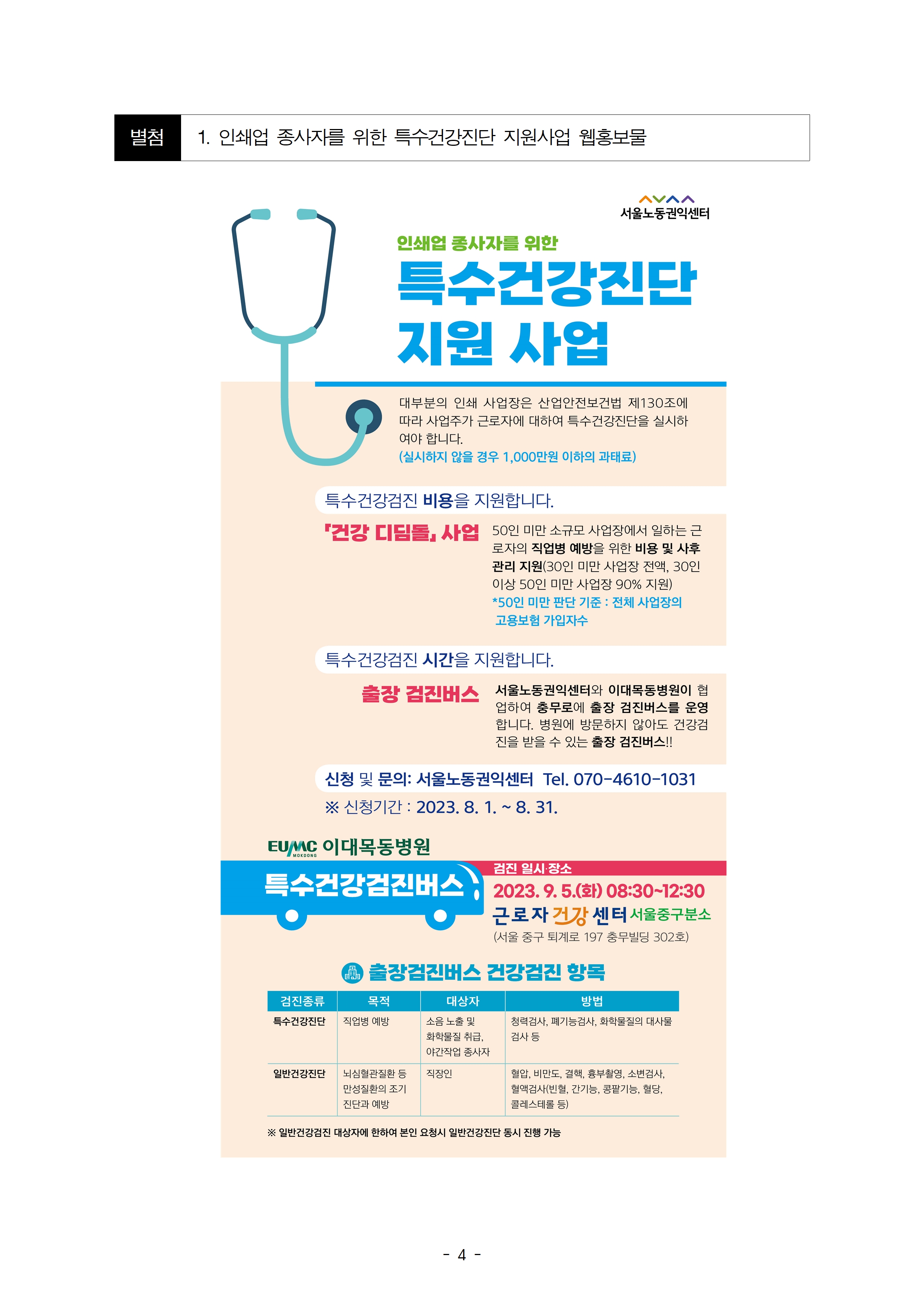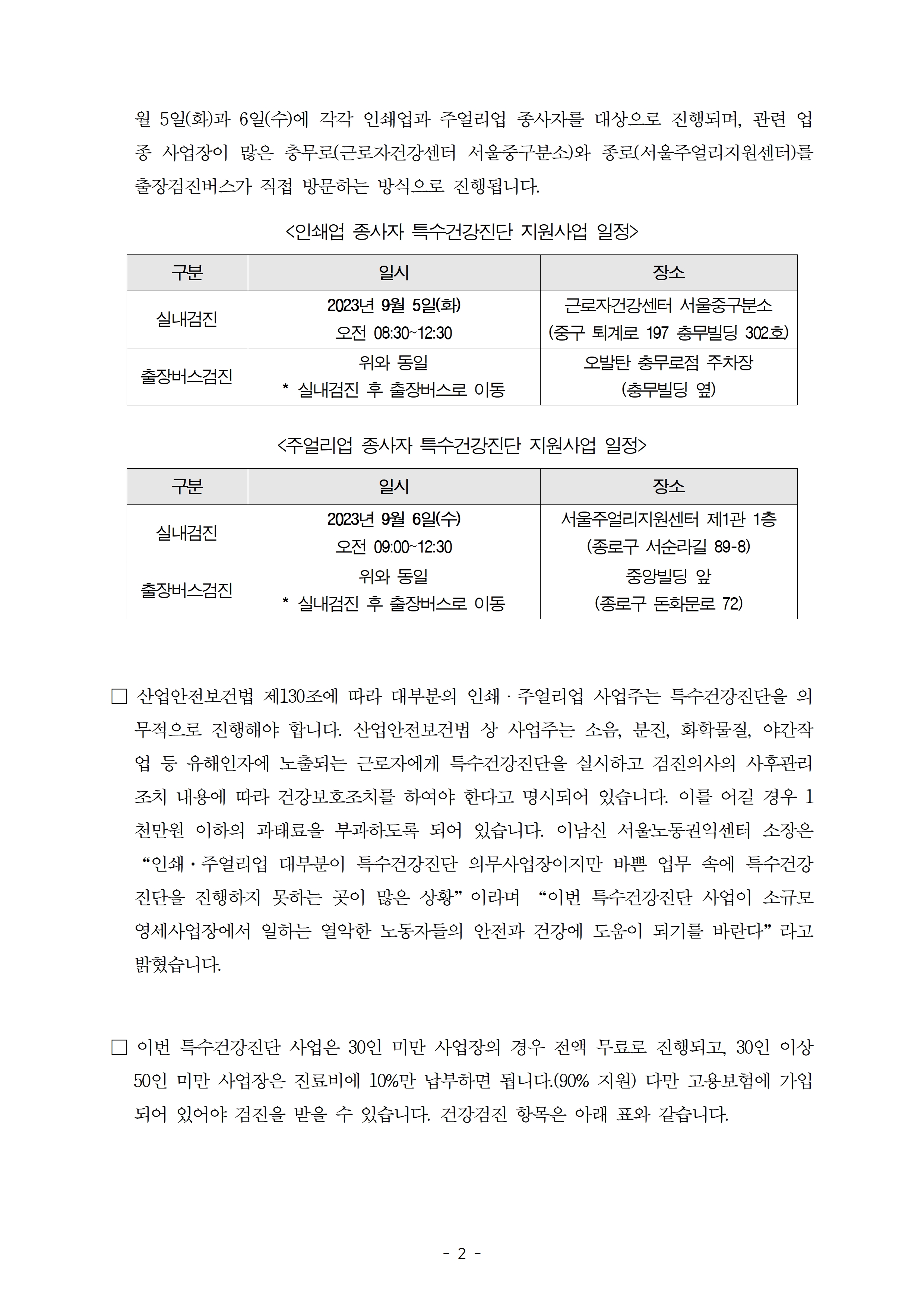 소규모 사업장에 특수건강검진 출장버스가 찾아갑니다