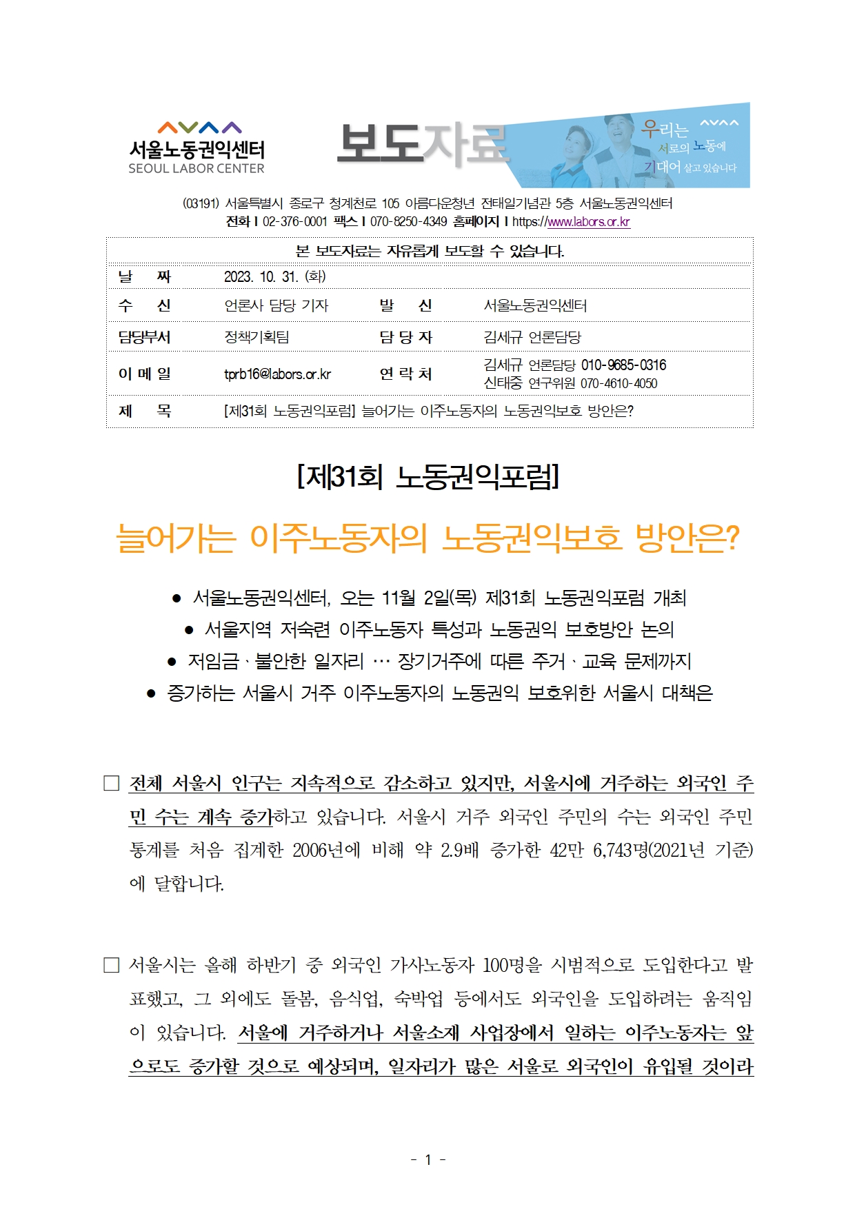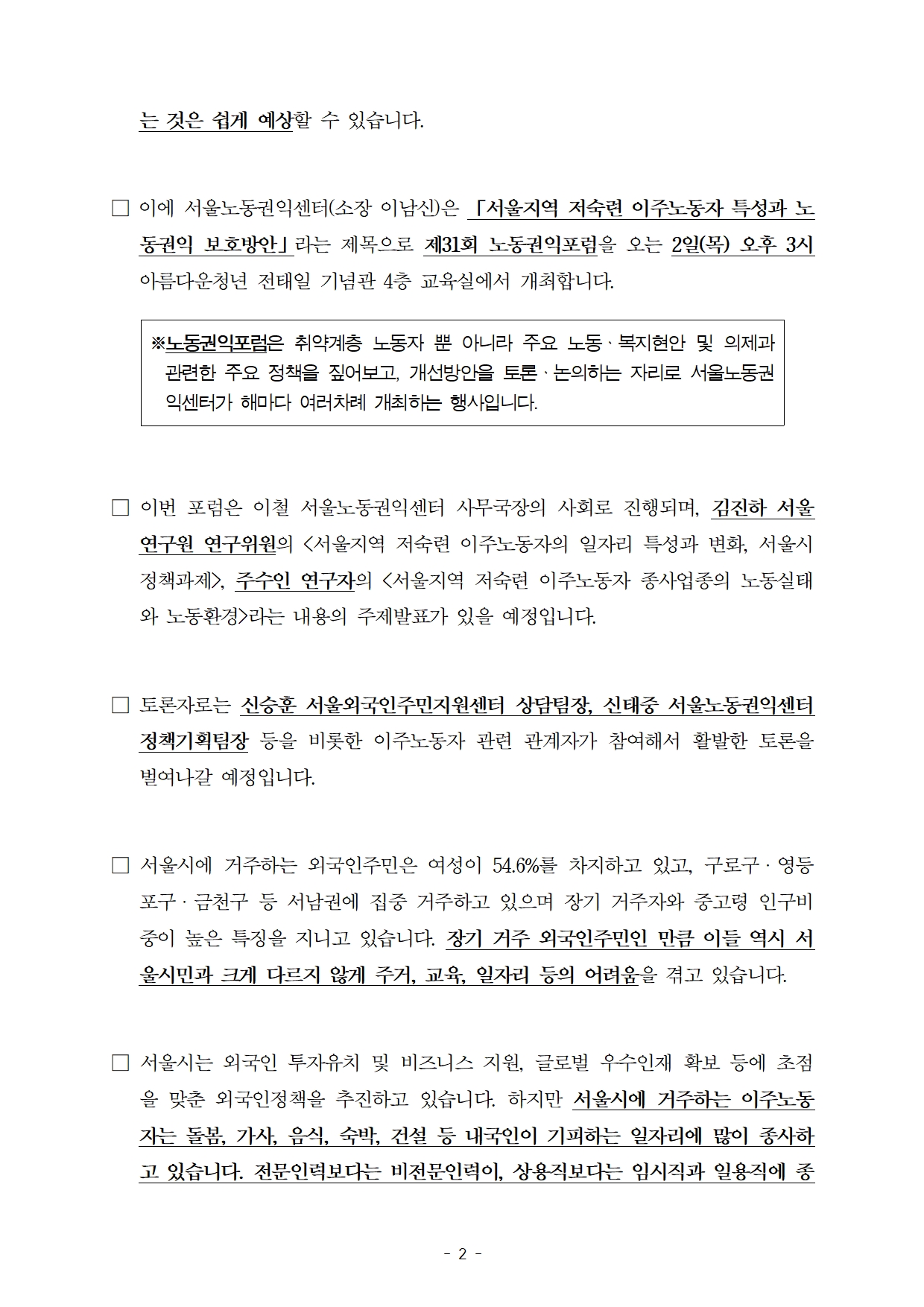 늘어가는 이주노동자의 노동권익 보호방안은?_제31회 노동권익포럼