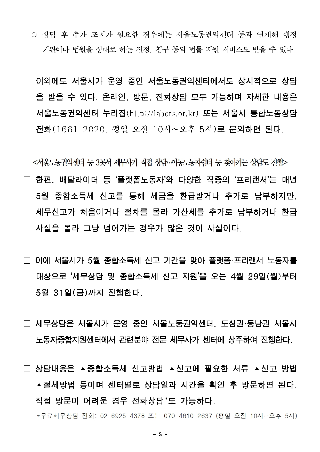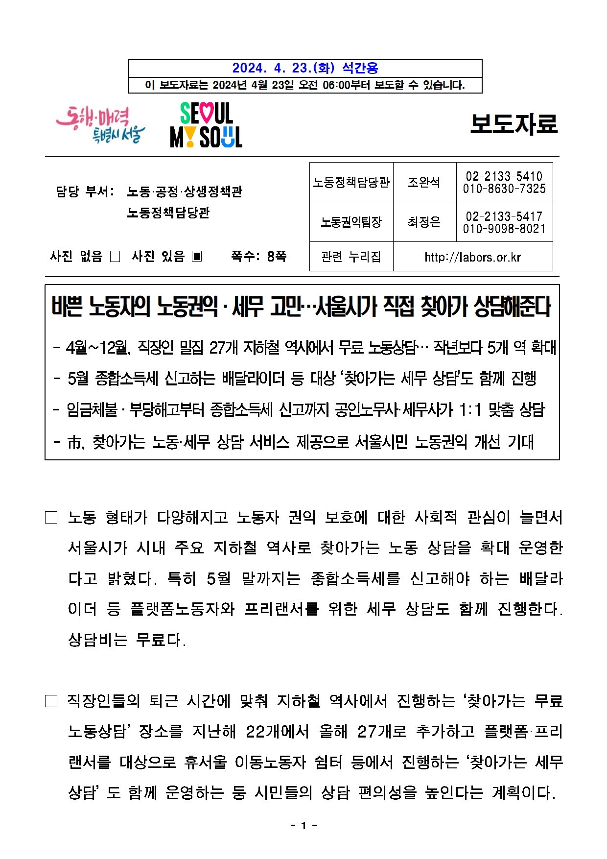 바쁜 노동자의 노동권익·세무 고민…서울시가 직접 찾아가 상담해준다