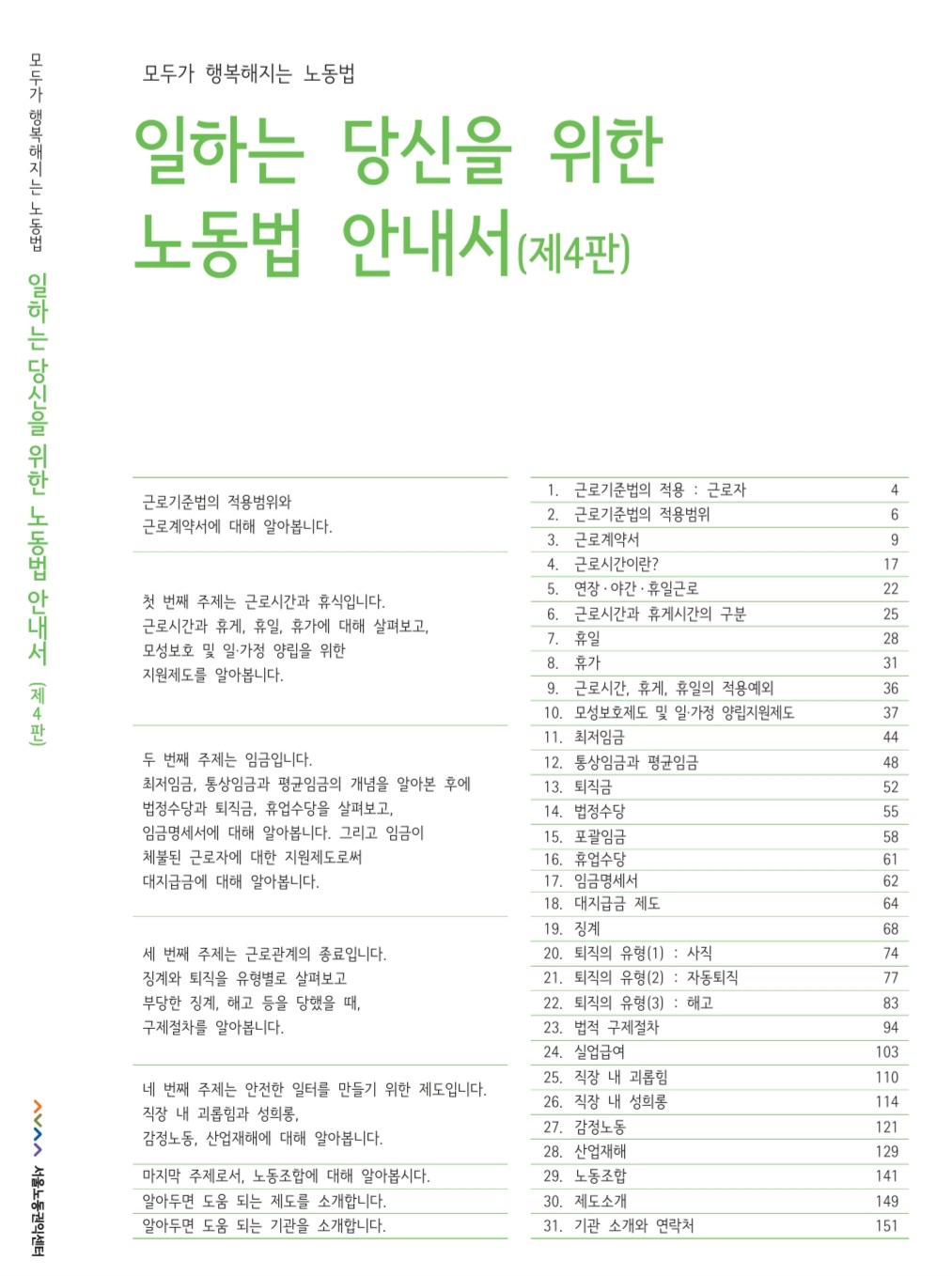 | '일하는 당신을 위한 노동법 안내서(제4판)' 시민 노동법률 교재 개정판 | |